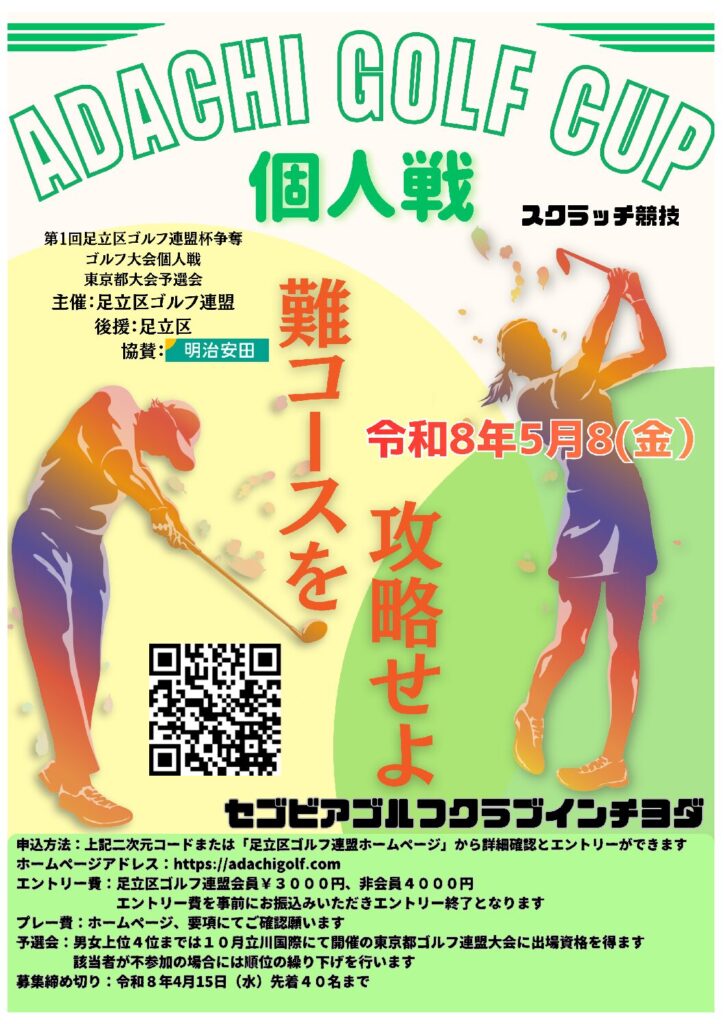 東京都・(公財)東京都スポーツ協会・(公財)足立区スポーツ協会、足立区ゴルフ連盟の年間行事のひとつとしてジュニアゴルファーの育成を行っています。